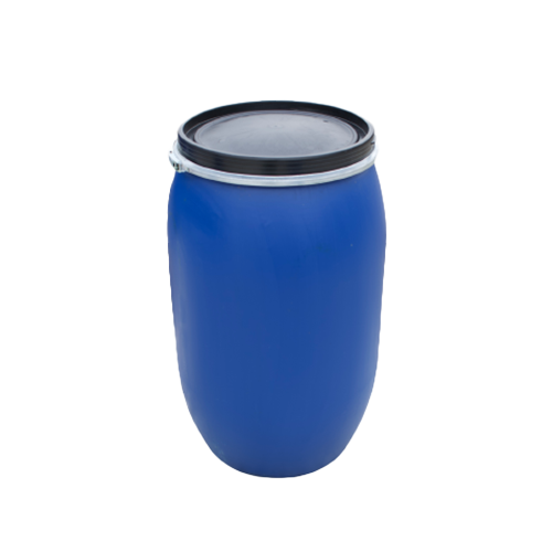 Κενό πλαστικό βαρέλι 1H2, UN 120 λίτρων χωρητικότητας, ανοιχτού τύπου με καπάκι και τσέρκι